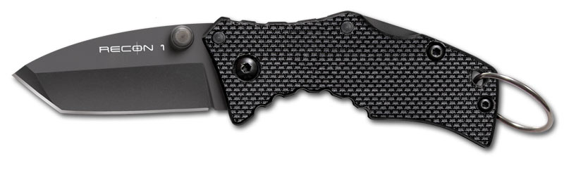 Das Messer hat eine ca. 5cm lange Klinge und entspricht den meisten Anforderungen der größeren Messer der Recon Serie. Der einzige Unterschied ist, dass die Griffschalen aus G-10 Griv-Ex™ Stil sind und der Messerklipp wurde ersetzt durch einen kleinen Schlüsselring.