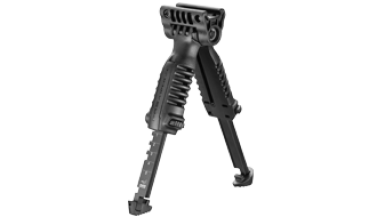 Auf Knopfdruck verwandelt sich der Griff in ein Zweibein. Jede Seite ist in 5 Stufen verstellbar. Die Schenkel sind aus 6061-T6 hart anodisiertem Aluminium Der einmalige Doppelknopf verhindert ungewolltes Auslösen des Zweibeins. Quick Release Mechanismus passend auf jeder Weaverschiene in 1913 Mil Spec Strapazierfähige und leichte Konstruktion Für den Einbau brauchen sie Ihre Waffe nicht zu verändern Erhältlich in der Farbe Schwarz Getestet einen Druck von 115KG auszuhalten